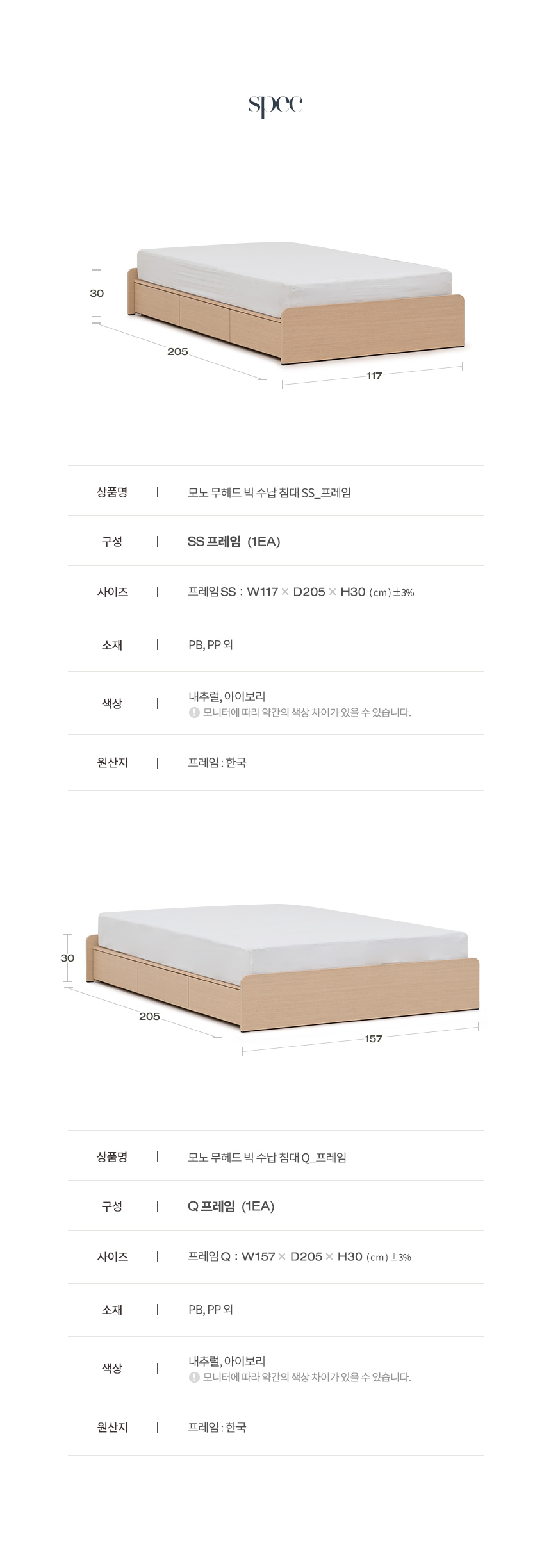 | 품명 | 모노 무헤드 빅 수납 침대 SS_프레임 | ||