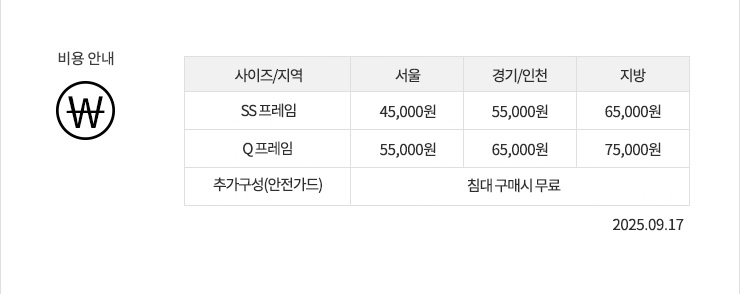 | 품질보증기준 | 설치 후 1년 무상 A/S(단,고객 귀책시 제외 | ||