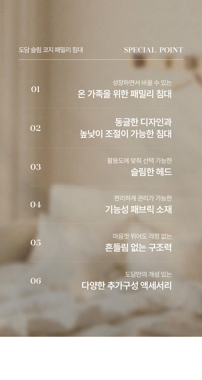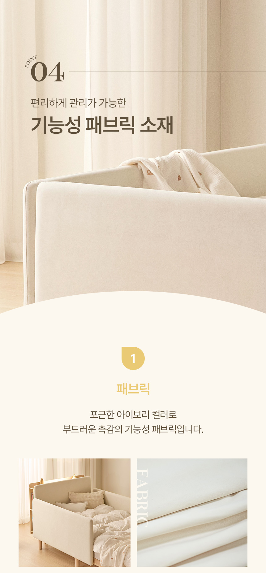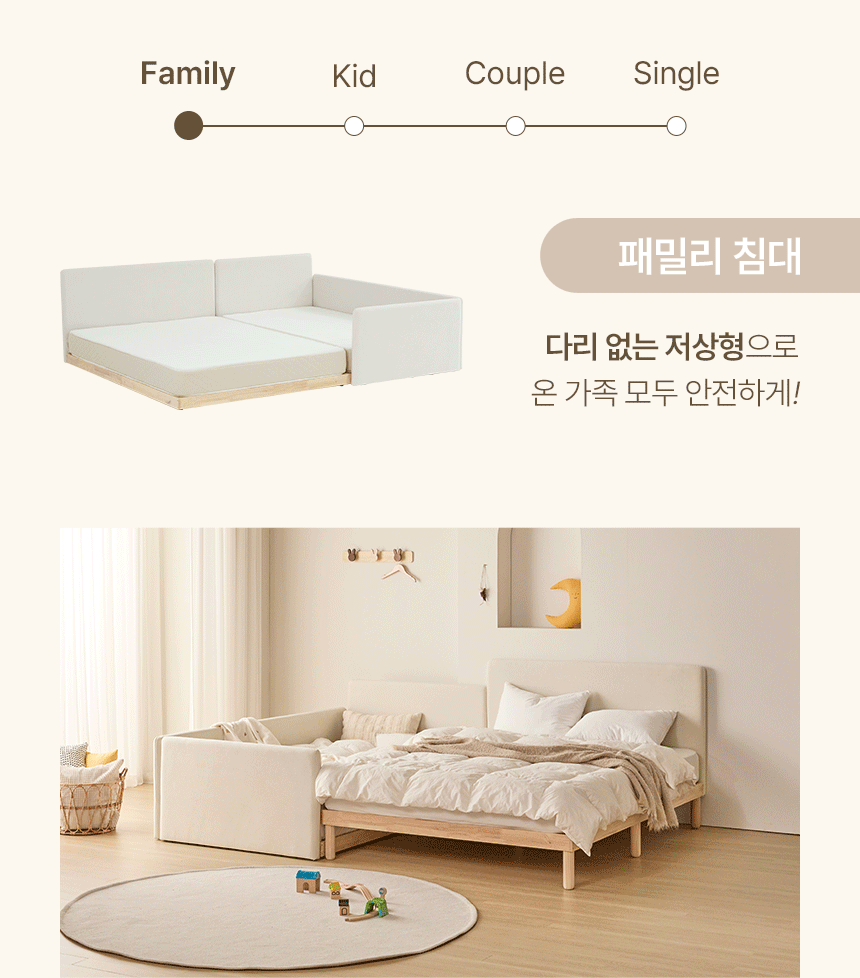 | 주요 소재 | 기능성 패브릭원단, 원목프레임(핀란드산 소나무), MDF, 데코시트, 스틸브라켓 | ||
