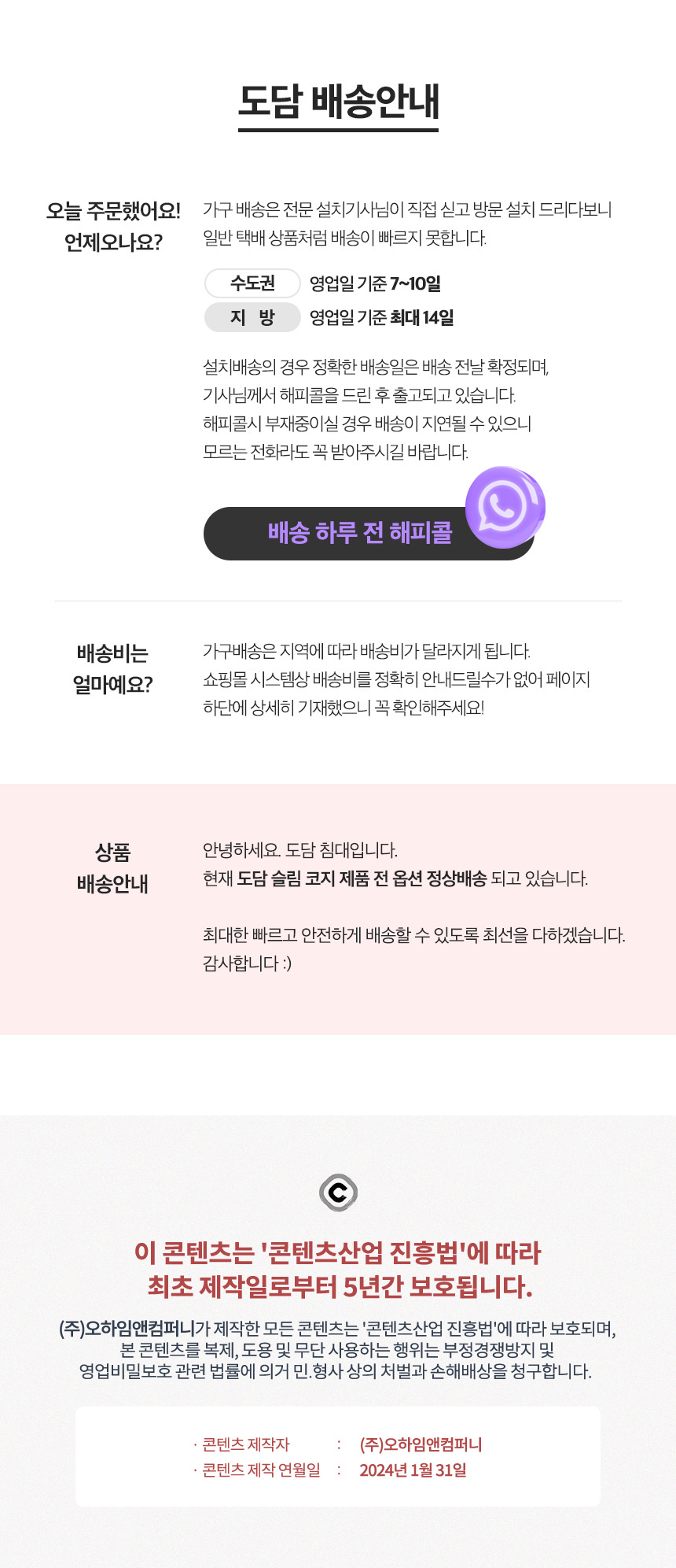 | 품질보증기준 | 설치 후 1년 무상 A/S(단,고객 귀책시 제외) | ||