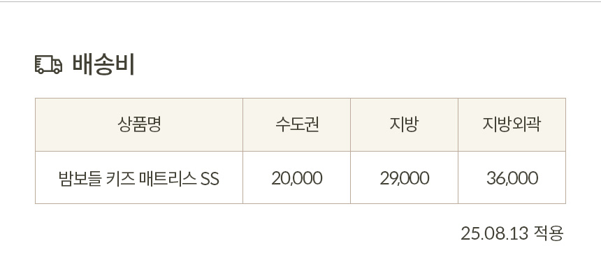 | 구성품 | 밤보들 키즈 매트리스 SS | ||