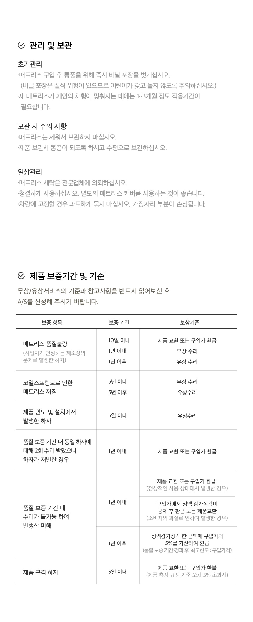 | 품질보증기준 | 설치 후 1년 무상 A/S (단, 고객 귀책시 제외) | ||