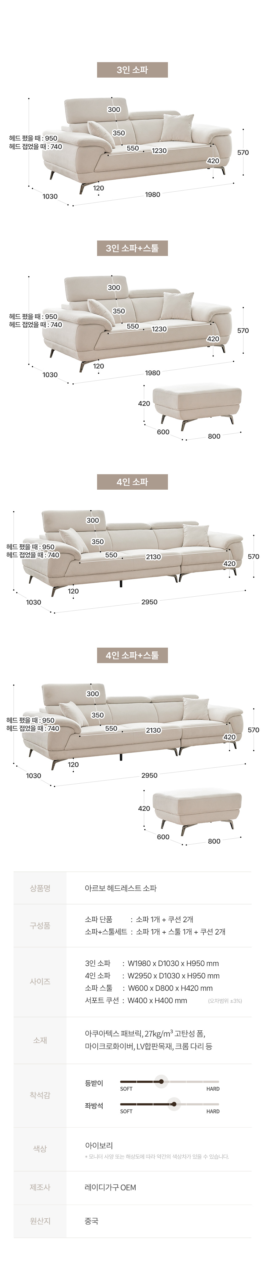 이미지 확대보기[오늘핫딜][11/10-11] 쿠션증정 아르보 헤드레스트 패브릭 소파 (3인/4인)
